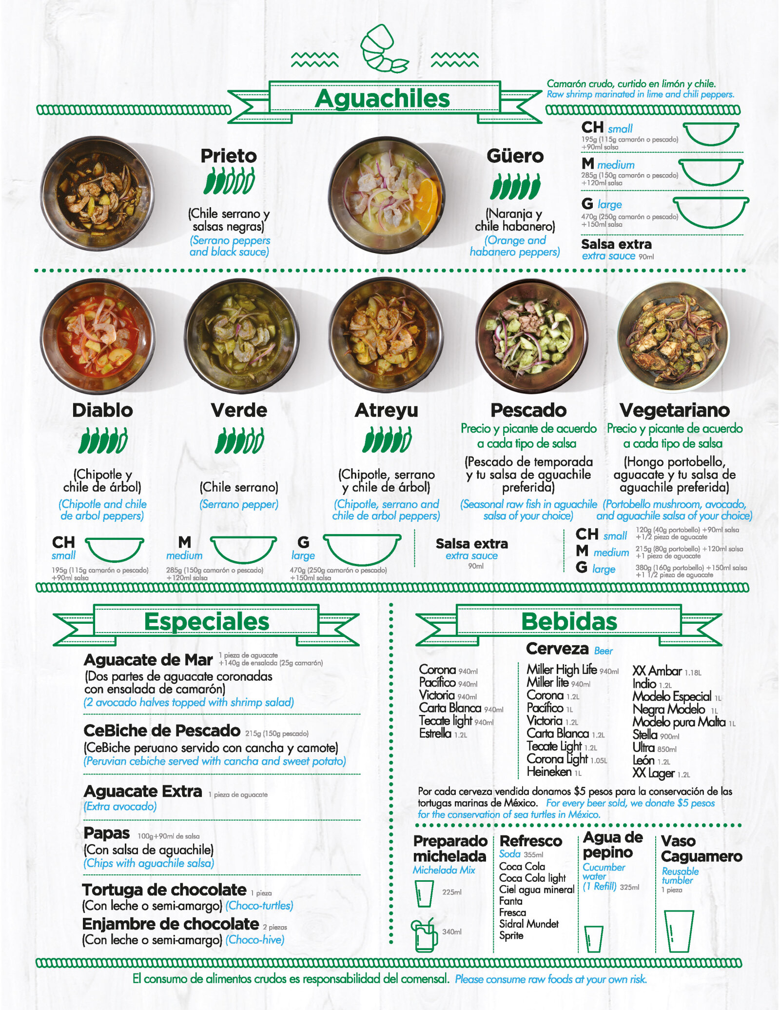 Caguamas bien frías y los mejores aguachiles para acompañar, desde el Aguachile Prieto que es un salseado rico pero con bajo nivel de picor, hasta su aguachile más rico y picos a nuestro parecer "El Aguachile el Güero" preparado con naranja y habanero. El proyecto nace en 2013 con la idea de crear un vínculo entre la sociedad y el medio ambiente. Un espacio ideal, donde puedas venir a tomarte una cagua helada y un verdadero aguachile, al mismo tiempo que estás apoyando una causa ecológica. Nos llamamos 1000 Caguamas porque solo 1 de cada 1000 tortugas marinas logran llegar a edad adulta (estadística aproximada). Y así pues, donamos $5 pesos por cada cerveza vendida, mismos que se destinan para ayudar a que cada una de las especies de tortuga marina pueda encontrar su camino hacia un futuro más prometedor y dejar atrás el peligro de extinción.